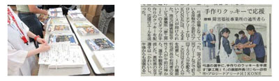 ■施設外作業に取り組みました  国スポ大会用の資料封入作業を市内の複数の福祉事業所で委託を受け、彦根市障害者福祉センターにて合同で作業を行いました。ほかに、大会の来場者や競技者へのふるまい品の受注と配付を大会期間中3回行い、新聞にも掲載されました。